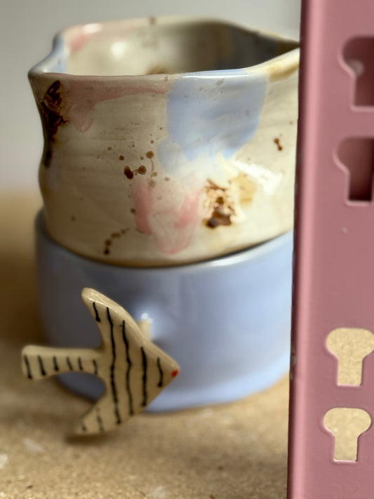 WyprzedaneKubek w ptaszki różowe- OUTLET