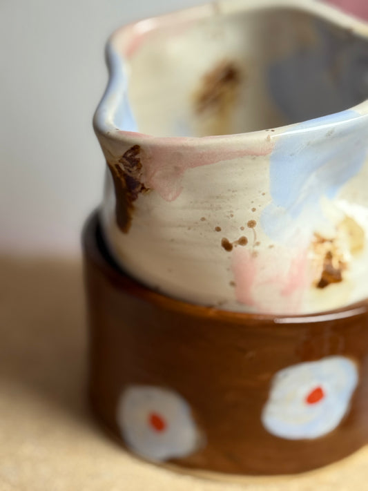 WyprzedaneKubek w brązowe kwiaty- outlet