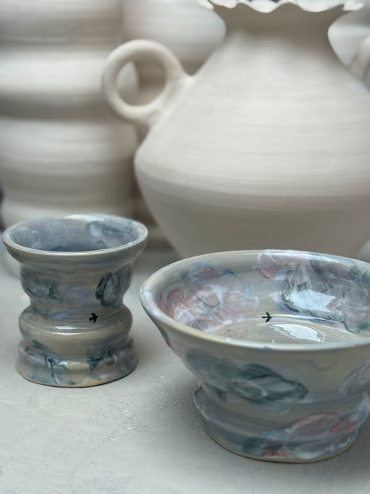ŁĄKA STUDIO to autorska przestrzeń ceramiki i obrazu, tworzona z miłości do rzemiosła i sztuki. Każde naczynie, ręcznie toczone na kole garncarskim, jest unikatowe. Ceramika i malarstwo przenikają się tu formą, kolorem i nastrojem, łącząc ponadczasowy charakter z nowoczesną wrażliwością. To przedmioty i obrazy, które naturalnie wpisują się w codzienność, nadając wnętrzom ciepło, harmonię i osobisty charakter.