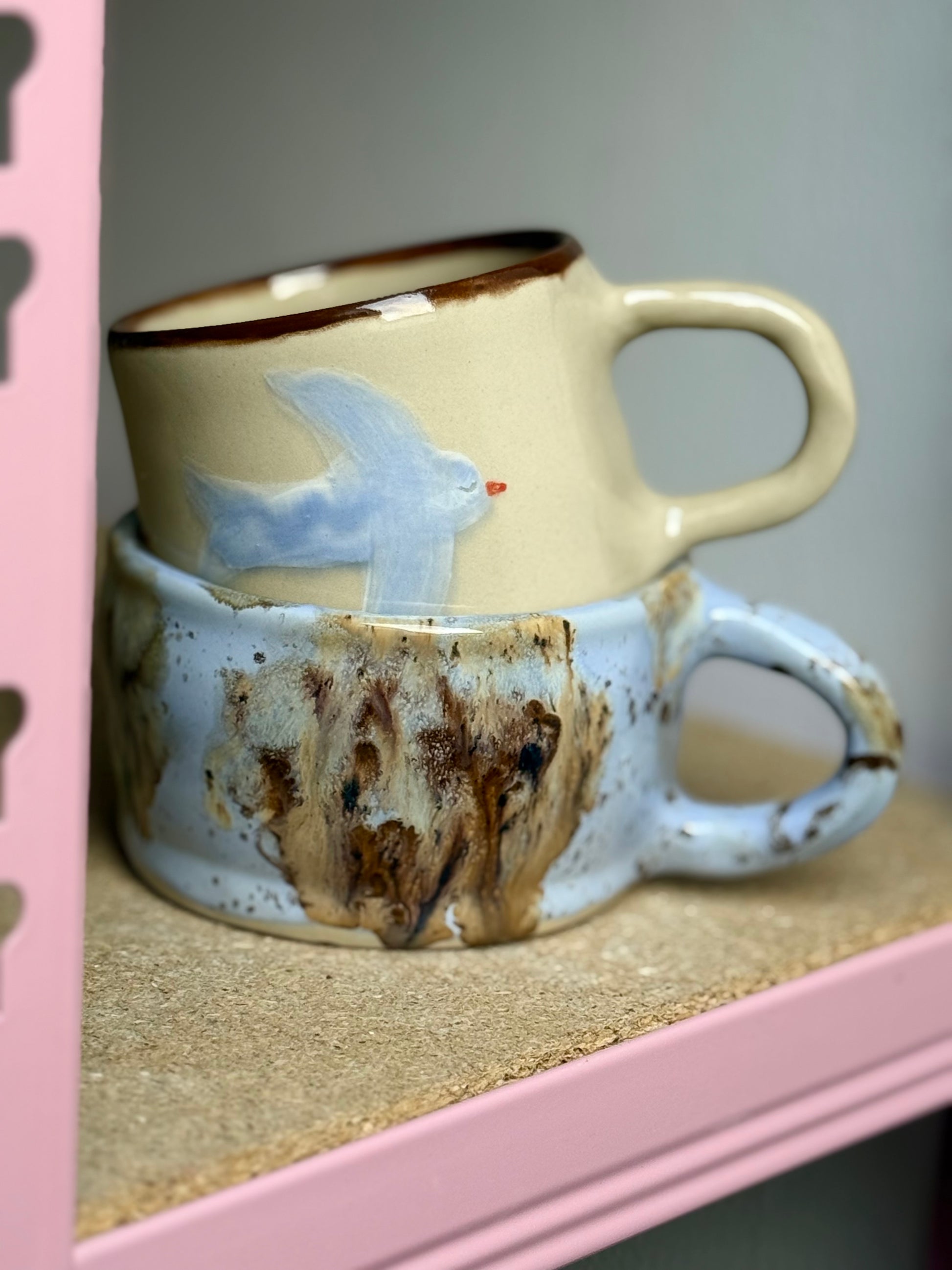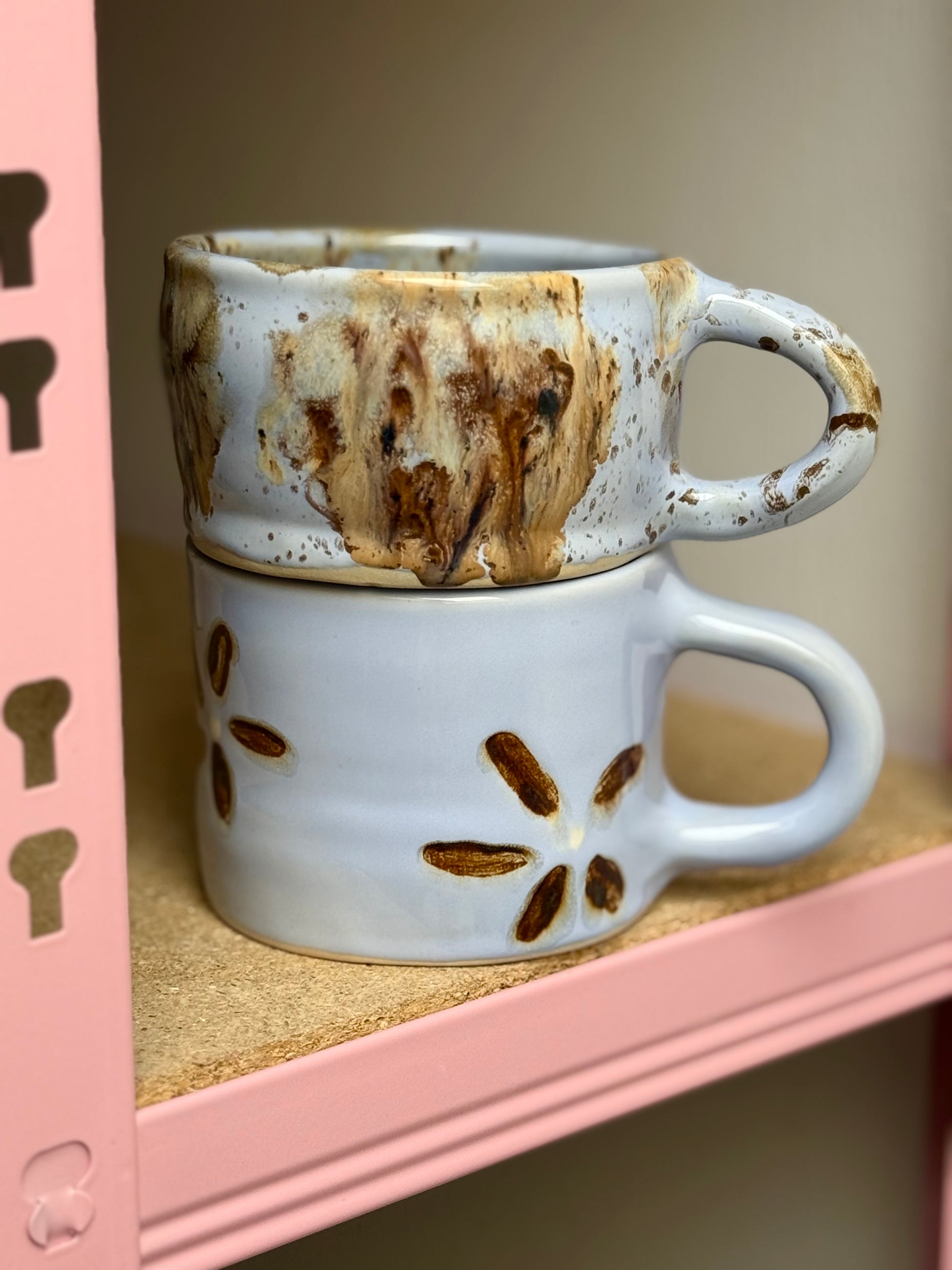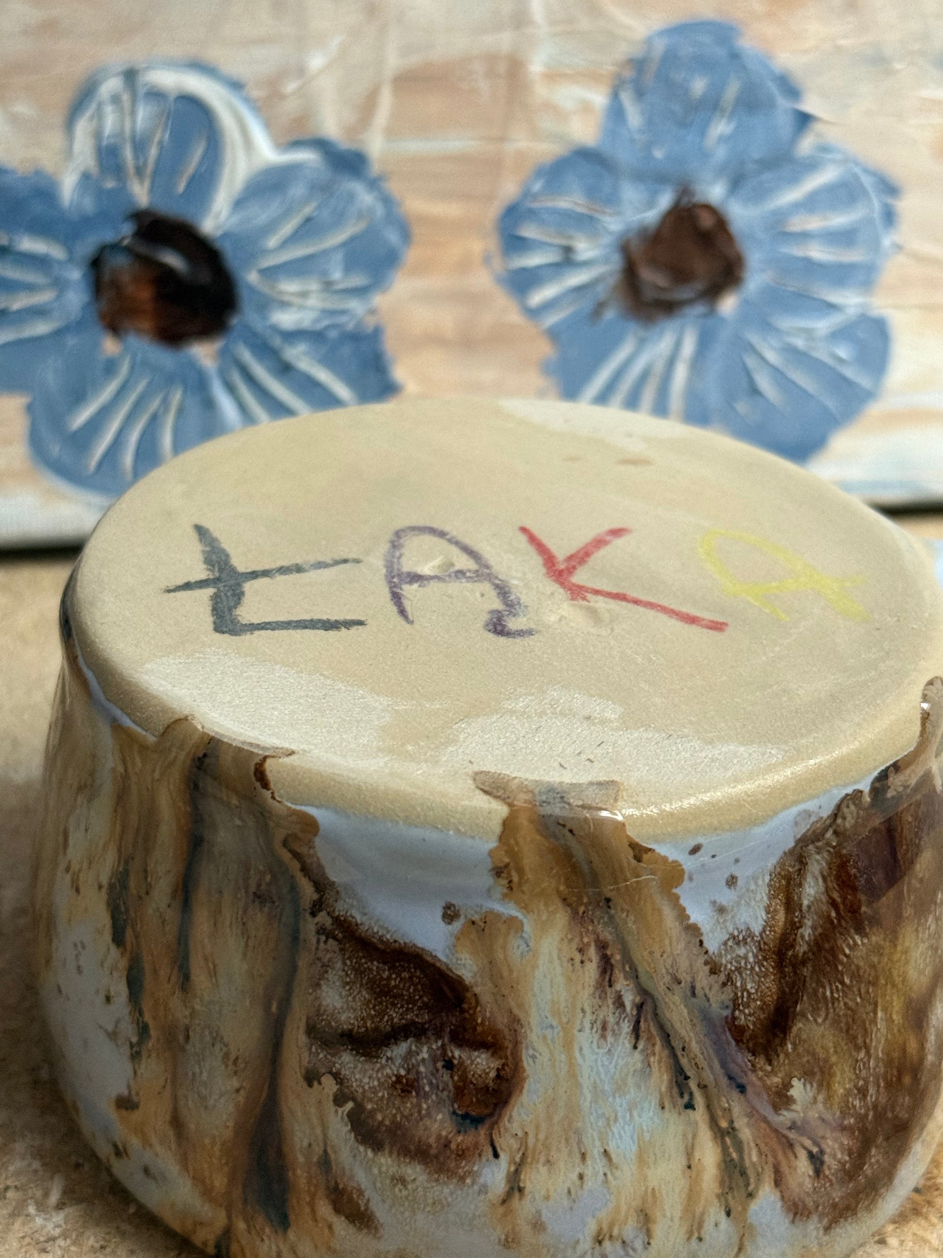 Kubek w obniżonej cenie ze względu na przetarcia na spodzie, ponieważ usuwałam szkliwo, które spłynęło, i ma dwa lekkie wgłębienia również na spodzie, nie przeszkadza to w użytkowaniu :)